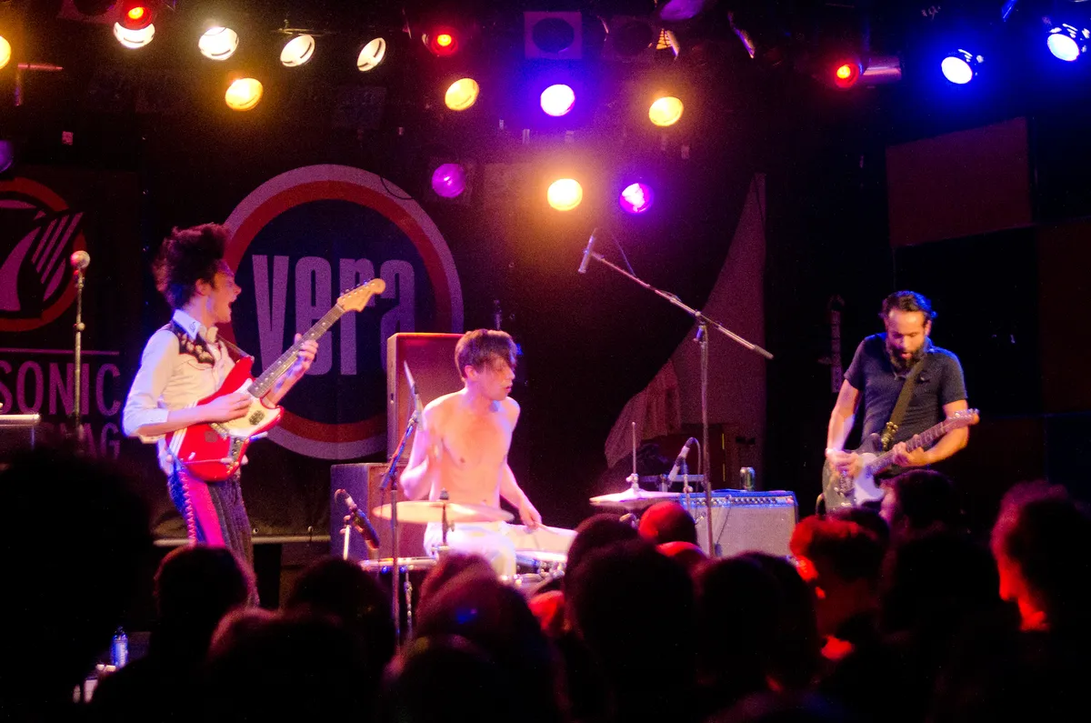 The Good The Bad uit Kopenhagen, ofwel de ‘new school of surf’ op Eurosonic. Het drietal, met onder andere de oud-gitarist van The Raveonettes in de gelederen, maakt volledig instrumentale psych-surf. Met het drumstel vooraan het podium en de twee gitaristen eromheen zwermend brengen ze een explosie van energie naar Vera.