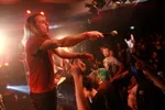 Ja, dan heb je dus niet alleen één van de beste en hardste Nederlandse albums van 2012 gemaakt, maar blijk je ook nog een brute liveshow in huis te hebben. Dan gaat de boel kapot om twee uur 's nachts. Ja, daar kun je op wachten. Dan gaan mensen met elkaar smijten, stagediven van dertig centimeter hoogte. Dan grijpen ze de microfoon om mee te blèren met opruiende songs als 'Featherless Redheads', 'Romans' en 'Announce', dan gaan ze crowdsurfen onder de lampen aan het lage plafond. Waarop de zanger zelf dat voorbeeld nog volgt ook. Ja, daar kun je als welwillende security-medewerker niks meer aan doen. Dan kun je wel de schoen van de zanger krampachtig beet pakken, maar dat pikken de mensen niet. Nee, dan kun je dus weer aftaaien met de schrik in je ogen. En die wall of death waar de gitarist op het laatste moment uit springt… Het zijn bizarre taferelen.