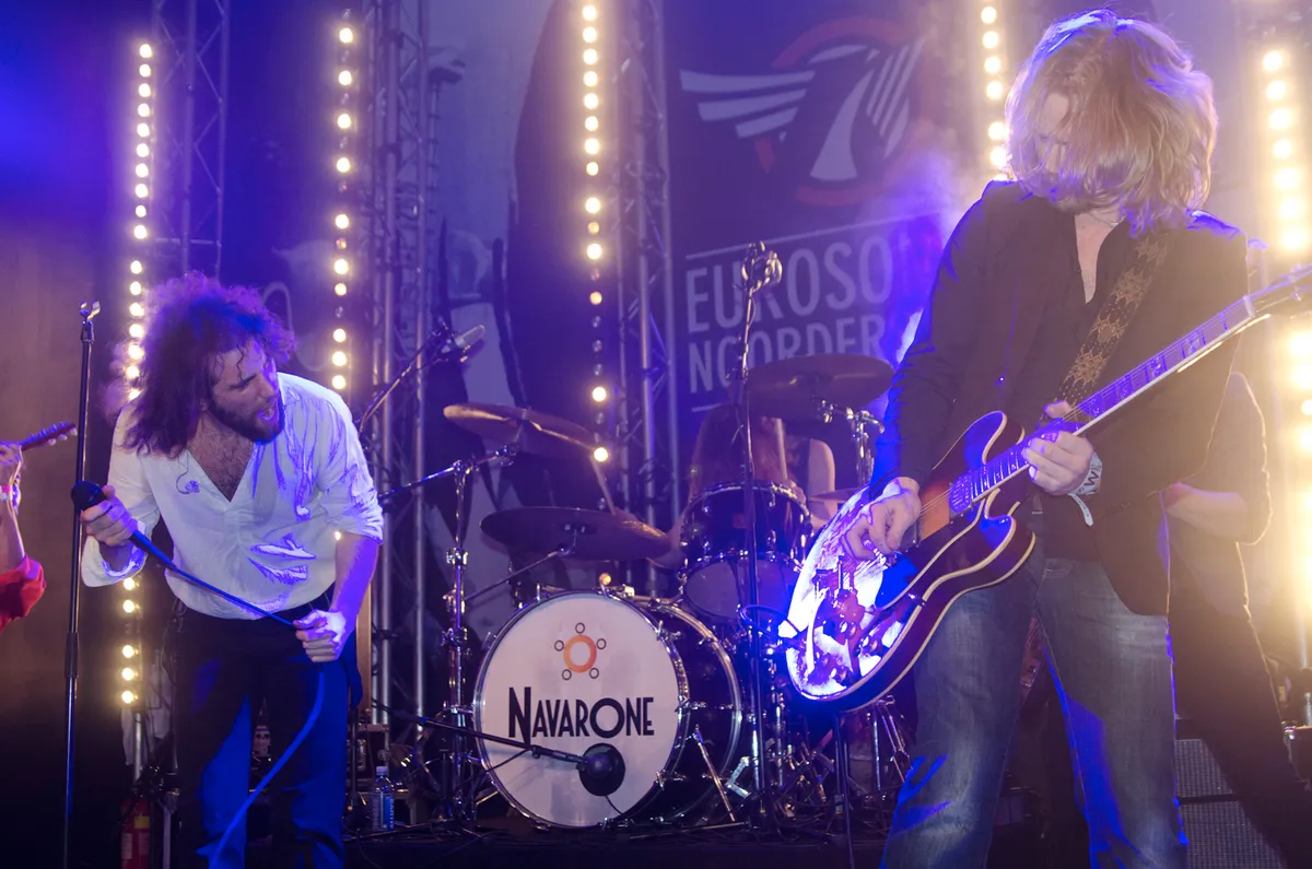 Een zanger met meer haar dan een grizzly beer, een gitarist die continu kijkt alsof ‘ie bezeten is door een combinatie van verkeerd gevallen paddestoelen en de duivel, een bassist die een kloon van een vroege Matthew Bellamy is, en een jolige drummer met blote bast en leren hesje. Meer seventies ga je het vanavond niet krijgen. Dit is een blik herrie à la Wolfmother meets Guns ’n Roses. Op hun album 'A Darker Shade of White' klinken klassieke spacende out-of-this-world gitaarsolo’s in combinatie met een zanger die het schuim van je bier zingt. Er wordt nog net niet met bier gegooid, maar dat is wel het oergevoel dat Navarone oproept. Deze band doet alsof dit kleine binnenpodium een groot festivalpodium is en alsof ze al jaren te kampen hebben met hitsige groupies. En dat is al een beetje zo: de veertigplus-dames die vooraan staan roepen bij opkomst van de drummer heel hard ‘LEKKERRRRR!’. Die kan je in je zak steken, vriend.