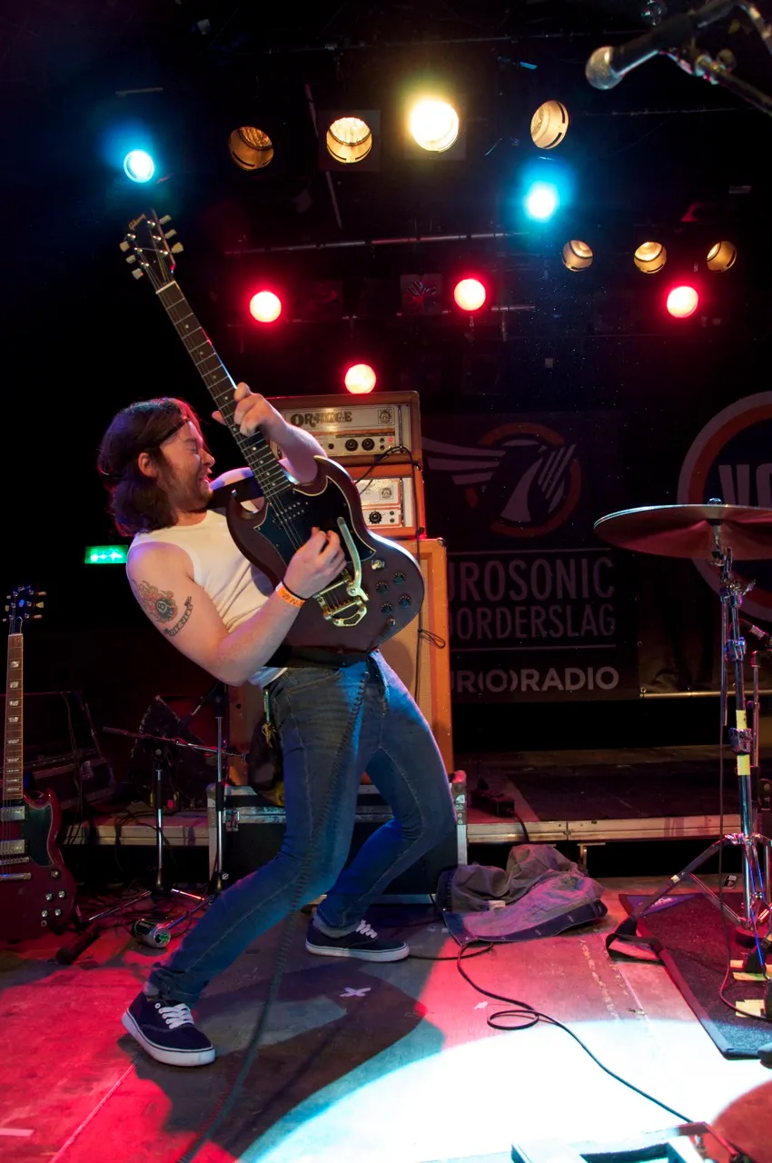De frontman heeft niet de strot die je voor zo’n band moet hebben. Hij gromt wat in de microfoon maar het is nauwelijks boven de herrie uit te horen. Af en toe wil je gewoon een krijs a la Triggerfinger erdoorheen om het af te maken. Nu voegt de zang eigenlijk zo goed als niets toe: net zo goed had Holy Mountain er instrumentaal op los kunnen raggen. De matige zang leidt er ook toe dat geen enkel nummer blijft hangen: het optreden is één grote, eenvormige brij aan gitaargeweld.