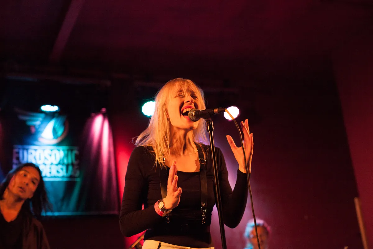 Als er een band op Eurosonic is die de meeste Airmiles heeft gespaard, zal het wel Ballet School zijn. Het trio is woonachtig in Berlijn, maar de bandleden komen uit Ierland, Engeland en Brazilië. De opstelling is vrij basaal: drums, gitaar en zang, maar wat knalt iedereen individueel zeg. De drummer is voorzien van electronische onderdelen en kan eindeloos variëren, net zoals de gitarist die minstens acht knoppen heeft om op te drukken en de zangeres. Oh, de zangeres. Een manic pixie dream girl met een dijk van een stem. Dit alles smelt samen tot een mix van shoegaze, jaren 80 pop en trap. Ja, trap. Drummer Louis McGuire tovert echt van alles uit zijn drumstel en speelt met de soepelheid van een jazzdrummer.
