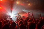 De kleine zaal transformeert binnen 'geen tijd' tot een stomende nachtclub. Dat de drank al rijkelijk gevloeid heeft, draagt hier ongetwijfeld aan bij, maar wat maakt het uit. Biertjes worden gesmeten, een jongen surft voorzichtig over het publiek, een bescheiden fakkel wordt aangestoken, handen reiken naar het plafond, op de tribunes staat men op en in de zaal wordt de paringsdans gedanst.