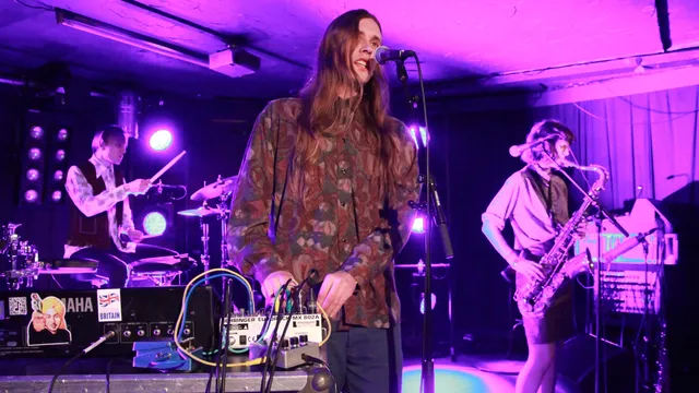 Die saxofoniste met haar korte straffe rokje gooit er zomaar een zwoele solo uit, even weg uit haar strikte rol. Jaakko draait aan zijn effecten om het net wat minder corny de PA uit te sturen. De frontman doet hetzelfde met zijn Yamaha synth vol spacesounds, en met zijn eigen stem.