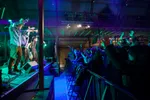 Pieter, Ko, Bo, Jac, Pyke, Younes, Gino, Tienson en Sonny. Wie een beetje festival- of concertbezoeker is, heeft deze negen jongeheren ongetwijfeld al een keer eerder gezien. Jungle By Night heeft de afgelopen jaren furore gemaakt met hun zonnige afrobeat, funk en dub. Hoe anders zal het nieuwe album The Hunt zijn? Alle nieuwe nummers hebben vanavond wel een paar gemeenschappelijke kenmerken: agressiever, doelgerichter en gewaagder. In de basis blijft het voornamelijk bij afrobeat en funk, maar boven die laag wordt er met vlagen gestrooid met de nodige psychedelica. De steeds herhalende gitaarlijnen zijn bedwelmend, vette vibrato op de orgels en de blazerssectie soms zingerig.