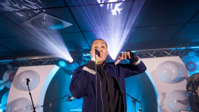 'Ze noemen me een geluksvogel,' grijnst Maydien. Hij bekijkt het Noorderslag-logo achter hem nog eens, glimmend van trots. Hij begint laconiek over de zenuwen die hij zou voelen. Niets van te merken: wat een heerlijke gast, en wat een show. Vervolgens doet ie een spoken word, roemt hij Stef, een vriend uit Oss die speciaal op z’n verjaardag naar Groningen is gekomen om Maydien te supporten.