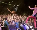 'Sommigen van jullie hebben ons misschien weleens op tv of bij een show gezien. Maar dit is het moment dat we het helemaal kapot gaan maken en ook vanavond gaan we het helemaal kapot maken.' Ja die wall of death doet het altijd toch? Maar ook in de aanvankelijk nog wat stugge Buma-zaal, waar veel publiek doorgaans graag blijft zitten? Jazeker, na Appelsap, Lowlands en zelfs Pinkpop gaat ook Noorderslag voor de bijl op die gabbersirene. En ook de - vaste prik - stagedivetruc met iemand uit het publiek lukt. Na een stief kwartiertje gaan de golven de hele zaal door.