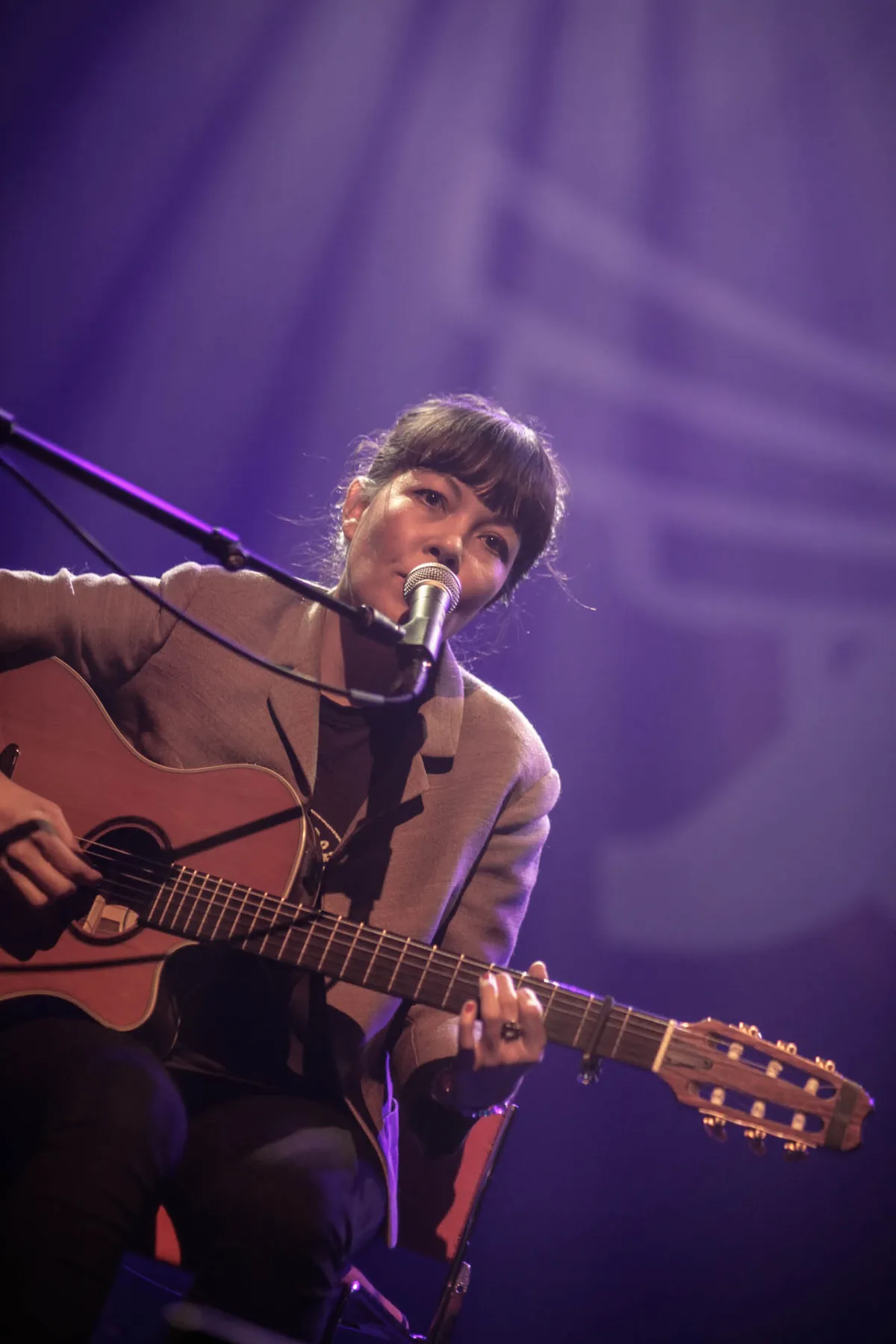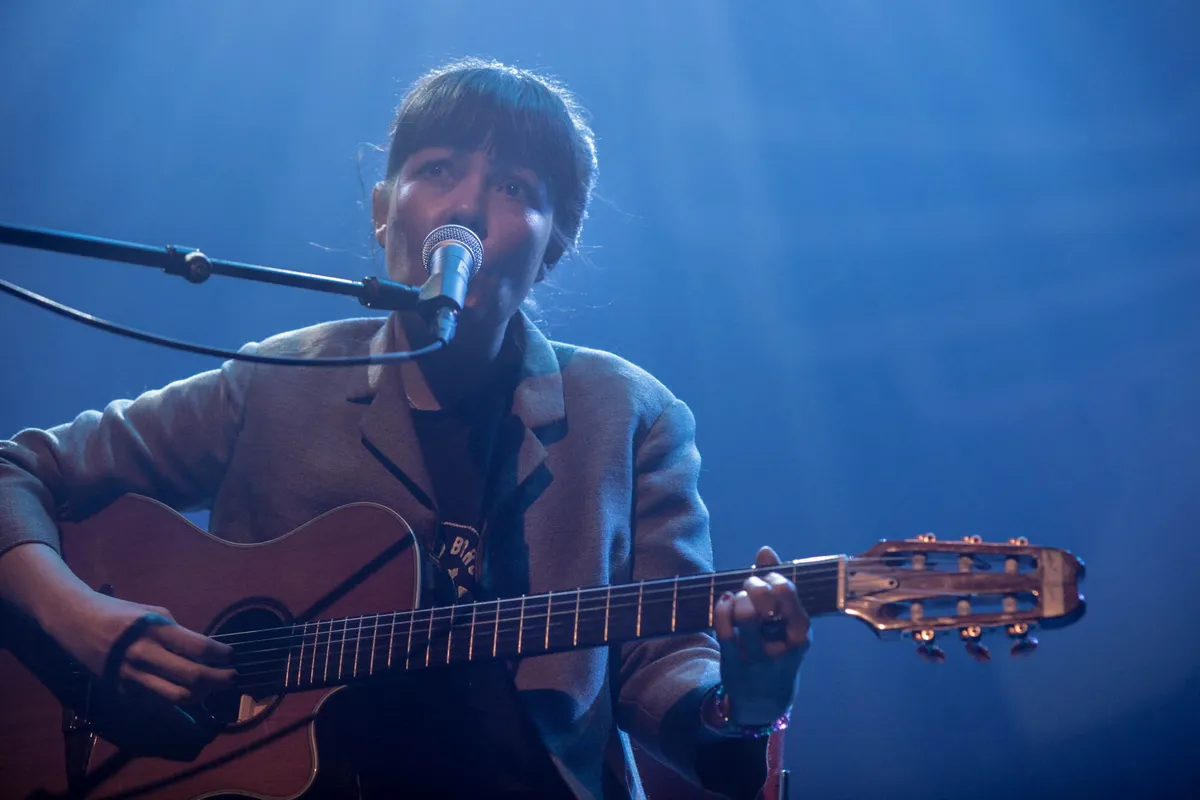 Na een paar woorden tot de volle zaal gericht te hebben zet ze Showtalked Windows in, de schitterende single van haar debuut. Het valt direct op hoe mooi de breekbare stem van de zangeres is. Het rustige getokkel op de gitaar dient vooral als ondersteuning van haar melancholisch gezang. Het is even zoeken waar de overbodige synthklanken vandaan komen. Rechts op het podium staat een geluidsman die het geheel wat verder in dient te kleuren. Na een drietal nummers is hij gelukkig verdwenen. Hij is niet de enige.