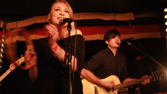 Op het minuscule podium van de spiegeltent staan de vijf muzikanten dicht op elkaar, allen in het zwart gekleed. Het oorspronkelijke duo Lio en Marie Limiñana staat voorop, hij met gitaar, zij met een coole, slinkse glimlach die af en toe even doorbreekt. Het zijn kleine momentjes die de coolfactor nog een boost geven.