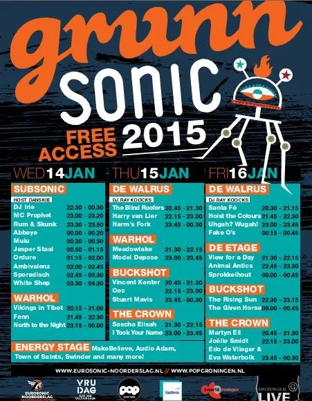 Wat: Om de lokale scene mee te laten profiteren van de grote hoeveelheid muziekliefhebbers in de stad krijgen bandjes uit Groningen een plekje op Grunnsonic. Geen gevestigde namen, wel veel talent in een veelvoud aan genres. Ook twee podia met bandjes uit Friesland en Drenthe zijn te zien op vrijdag in de Troubadour, maar dit valt dan weer niet onder Grunnsonic.