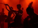 Dakh Daughters uit Oekraine wordt op de website van Eurosonic Noorderslag geïntroduceerd als een freak cabaret band en dat is niets te veel gezegd. De Stadsschouwburg is een passend decor voor dit gezelschap van zeven dames dat een theatrale performance neerzet in de geest van De Kift en Tom Waits ten tijde van zijn album The Black Rider. Ze wisselen veelvuldig van kostuum (van legeruniform tot bontjas), van instrument (van cello en accordeon tot een tweemeterlange hoorn) en van taal (we horen Russisch, Engels, Duits en Frans). Ze kunnen stampen en schreeuwen en krijsen en meteen daarna een heel gedragen en tragisch lied vertolken. Om vervolgens weer los te barsten in een carnavalesk feestnummer. Ze spelen zelfs een Duitstalige versie van 'Zeven Dagen Lang' van de Eindhovense 70s folkband Bots. Hoe komen ze daar nou aan? Misschien waren die destijds marxistisch genoeg om door de Sovjet-censuur heen te komen. Never a dull moment met deze Oekrainse dames, maar de Nederlandse boekers lijken er nog niet voor in de rij te staan. En dat terwijl dit het type act is waar ze op Glastonbury, Sziget of Roskilde wel raad mee weten. Ben benieuwd wie in Nederland zijn nek gaat uitsteken voor Dakh Daughters, by far de meest curieuze act van deze Eurosonic Noorderslag. (Willem van Zeeland)