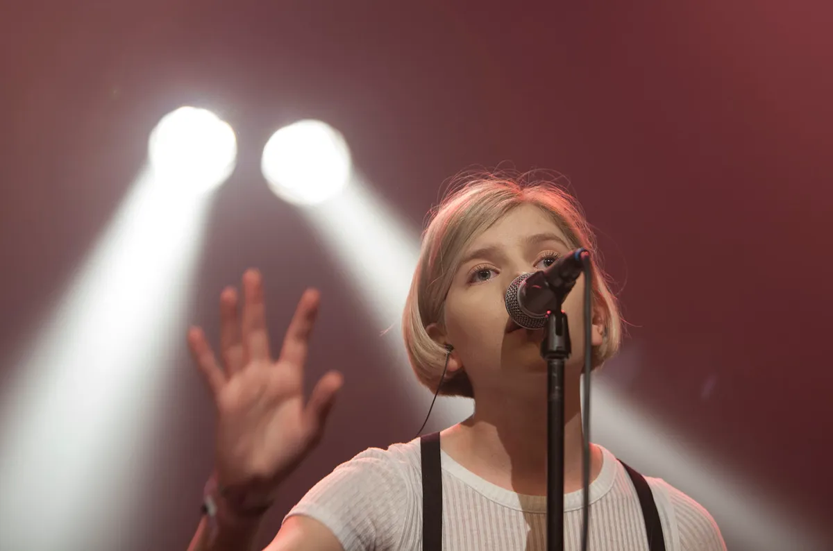 Bijna exact een jaar geleden stond in Grand Theatre de toen nog onbekende Ier Hozier te spelen. Hoe het hem later is vergaan, is bekend. De act die vandaag op hetzelfde podium alle aandacht krijgt, heeft de potentie om ook Heel. Groot. Te worden. Act in kwestie de band rondom de pas 18-jarige Noorse Aurora Aksnes. De kleine blondine heeft een oude ziel, getuige de heftige verhalen die zij bezingt, maar in haar maniertjes zit een stuk kinderlijkheid die je dan weer wel van een tiener verwacht. Zo is ze zichtbaar onder de indruk van de enorme drukte en is het moeilijk voor haar om haar armen stil te houden; gaat het over sterren, dan rijst ze haar ledematen naar boven en gaat het over rennen met wolven, dan is stilstaan geen optie. Waar AURORA, gewapend met haar gouden stem, gitarist, twee toetsenisten en drummer, in het begin nog in de indiefolkhoek zoekt, gaat het gaandeweg richting theatrale darkwave met kerkorgels, kathedraaldrums en heel haar ziel en zaligheid in die prachtige stem. De jaren 80-invloeden hangen in de lucht, zeker met het eerder genoemde 'Running With The Wolves' dat qua songtitel al niet veel meer Kate Busherig had kunnen zijn. Het moment is echter de toegift: een nóg minimalistischere versie van David Bowie's 'Life On Mars' waarbij ze vrij snel de tekst vergeet. Een man in het publiek kraait de woorden uit en AURORA herpakt zich. Alle aanwezige harten worden gestolen en er gloort een bijzonder hoopvolle toekomst voor deze Noorse jongedame. En die tweet dat ze in Amsterdam speelt? Die vergeven we haar. (Bas van Duren)