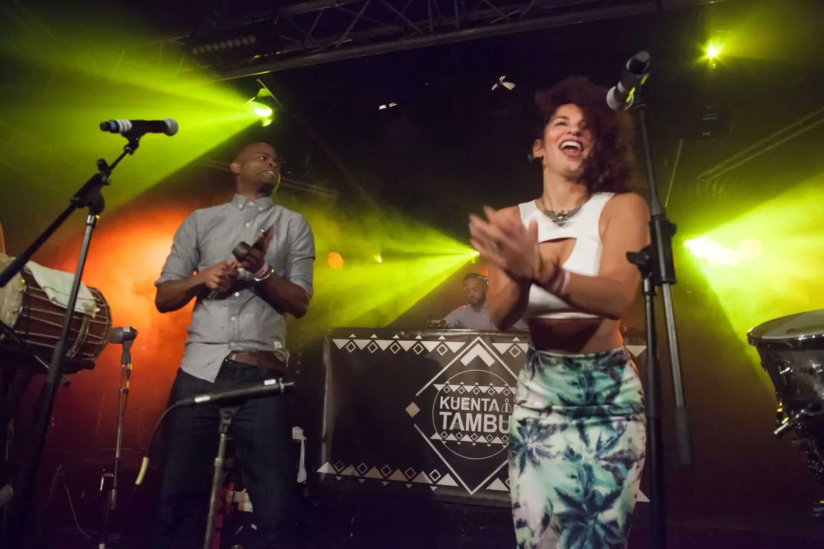In hamsterballen over het publiek lopen. Zwaaien met vlaggen met je eigen beeldmerk erop en blazende CO2-kanonnen. Als je recent bij een optreden van Major Lazer bent geweest, kun je ze allemaal afvinken. Maar wat zou je krijgen als je al die gekte zou schrappen? Als het gewoon weer om de muziek zou gaan, en enthousiasme? Het antwoord: iets dat verdomd veel lijkt op Kuenta i Tambu. Een pompende elektronische basis - Caribische dancehall voert de boventoon, maar ook good ol’ dubstep komt voorbij - afgetopt met geweldig opzwepende live percussie en vocalen: tropical bass uit onze eigen hoofdstad!