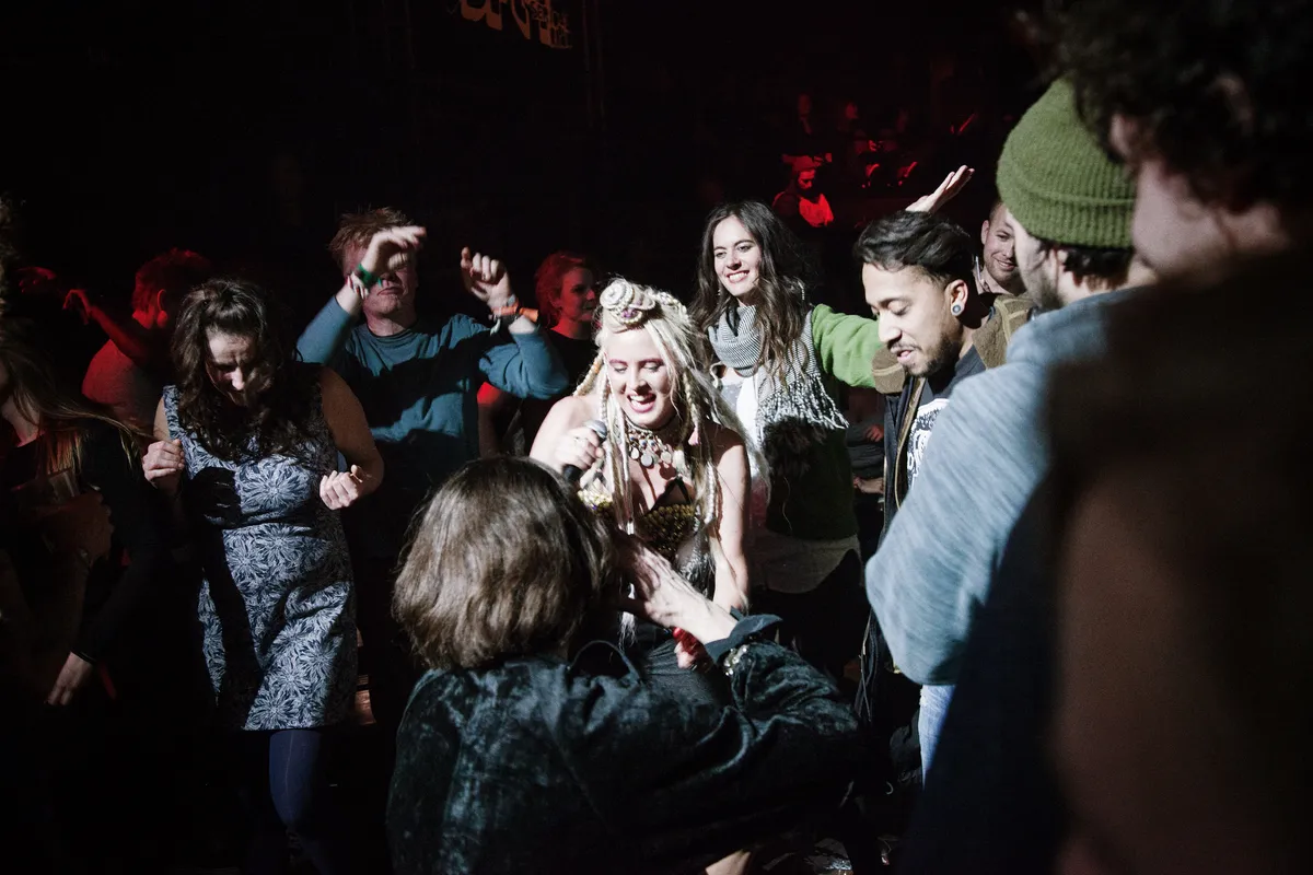 Al vroeg in de set wordt prijsnummer 'La Cumbia Dictatura' ingezet. Het publiek deint gewillig mee op het net zo dikke als zwoele ritme. De electro zoemt gewillig mee.