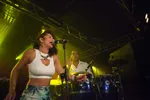 Ze stonden al eerder in 2011 en in 2013 op Eurosonic Noorderslag, dus eigenlijk kun je je afvragen waarom Skip & Die in vier jaar tijd voor de derde keer op het festival staat. 'Een nieuw album' zal het antwoord zijn, maar als in de praktijk blijkt in de Cathedral dat de nieuwe nummers van Cosmic Serpents live amper te onderscheiden zijn van de rest, rijst de vraag dan toch weer 'waarom'? Het afgelopen jaar stond de band al in Brazilië, Argentinië, Frankrijk, Spanje en nog veel meer landen, dus voor de exposure is het allang niet meer nodig. Natuurlijk klinkt het goed: de nadruk ligt wederom op dikke percussie, de capriolen van Cata.Pirata en de vette beats die Jori Collignon uit alle gaten weet te toveren, maar het 'dat kennen we wel'-gevoel lijkt ook in de zaal te overheersen. Pas wanneer Cata.Pirata zo tegen het einde aan het publiek in duikt, ontlokt ze eindelijk wat enthousiasme. Of hit 'Love Jihad' nog wordt gespeeld, maken we niet meer mee. De act gaat over haar tijd heen en we moeten door. (Bas van Duren)