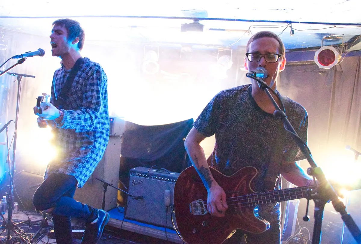 Thom Edward beent al even doldriest rond en mikt met wat misbaar een monitor op z'n kant. Het Britse noiserockduo kampt in De Beurs met de nodige geluidsproblemen en dan hebben ze hier ook nog "lunchboxes as speakers". Drummer Ash Weaver oogt als een enorme beer en speelt ook zo. Langharige Thom krijst en probeert uit alle macht het publiek naar voren en mee te krijgen. Hij heeft een bizarre stem, die door je ziel snijdt met het geluid van een microfoon over een lintzaag haalt.