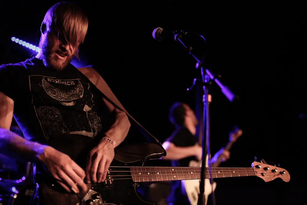 Op de Energy Stage in het Ebbingekwartier staan louter Groningse bands, waarvan de ene meer categorie Grunnsonic is en de andere meer Eurosonic. Bij Menhir is dat onderscheid nog niet evident. De stonerband bracht in twee jaar twee EP's uit, staat voor de tweede maal op Eurosonic en heeft twee bassisten en... nul gitaren. Er is wel een drummer en soms ook zang: geregeld een voice-over als intro en soms een diepe grunt van bassist Frank. Die oerbrul in Passing Grades is subliem. Frank bespeelt zijn bas wat meer als een gitaar; leidend, ronkend en met veel effecten (pedalen). Collega-bassist Arjan is van de ritmes en de grooves en duidelijk onderdeel van de zware ritmesectie. Het trio bakt er redelijk logge stoner van, met punk- en metalinvloeden, soms neigend naar Lowdown desert punk (Brant Bjork) en soms naar doom. De gitaar kunnen ze best missen, maar de vocalen (en de koebel!) zijn vooralsnog broodnodige smaakmakers. Tijd voor een langspeler. (Ingmar Griffioen)