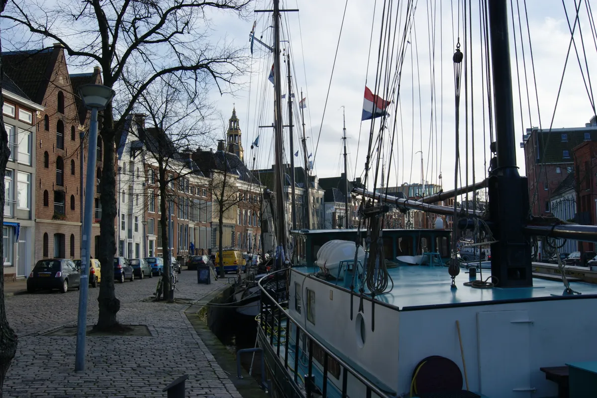 Aan de Eemskanaal Noordzijde liggen naast, en achter elkaar, tien grote schepen. Enkele vermoeide festivalgangers met rolkoffers lopen hier net aan het einde van de kade de hoek om. Op een windstille en heldere winterdag als vandaag gaat er een oase van rust uit van de schepen. De festivalhectiek is aan boord even ver te zoeken. Niet alleen vanwege de slapers overdag. Mark Jongedijk, deze week in het jaar even de havenmeester van Groningen, vertelt dat hij in tien jaar tijd nooit ontoelaatbaar gedrag op de schepen heeft meegemaakt. 'De enige dronken herrieschopper die ik ooit meegemaakt heb, was iemand die niet eens op het schip sliep.'