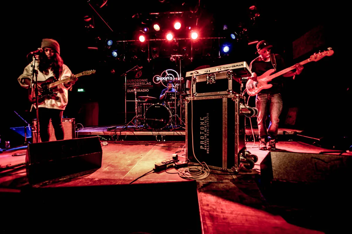 Er zijn twee manieren om een festival goed te starten. Optie 1: er met gestrekt been in gaan, totaal geen boodschap hebben aan 'er lekker inkomen' of die afterdinnerdip. Optie 2 is juist vederlicht beginnen en zo langzaam het publiek klaar wiegen voor vier nachten Groningen. Het Londense R&B-trio AOSOON kiest voor optie 3: de zangeres speelt wat kabbelende lijntjes op haar gitaar, de bassist neigt naar funky maar niet te, en de drummer gooit er keurig halverwege de meeste nummers een kickdrum in en triggert wat elektronica om de aardig gevulde Vera niet te laten indutten. (RHH)