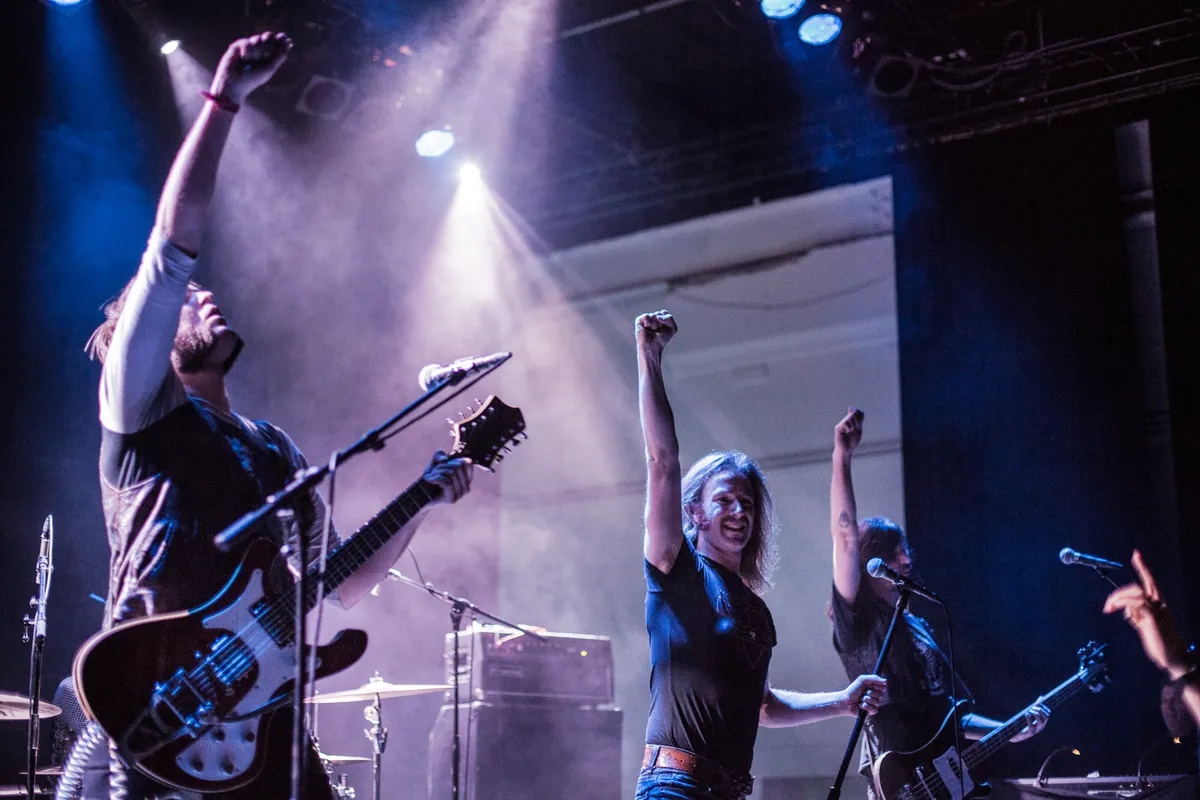 Bakkebaarden waar Wolverine nog van zou blozen, strakke zwarte spijkerbroeken, lang haar en gebalde vuisten in de lucht. Death Alley draait niet om hun voorliefde voor seventies hardrock heen. Vanaf dat de Amsterdammers op het podium stappen geven ze zo veel gas, dat de luidsprekers het direct moeilijk hebben. De zang zwabbert in de mix, alsmaar doorrazende gitaar klinkt soms vreemd dun.