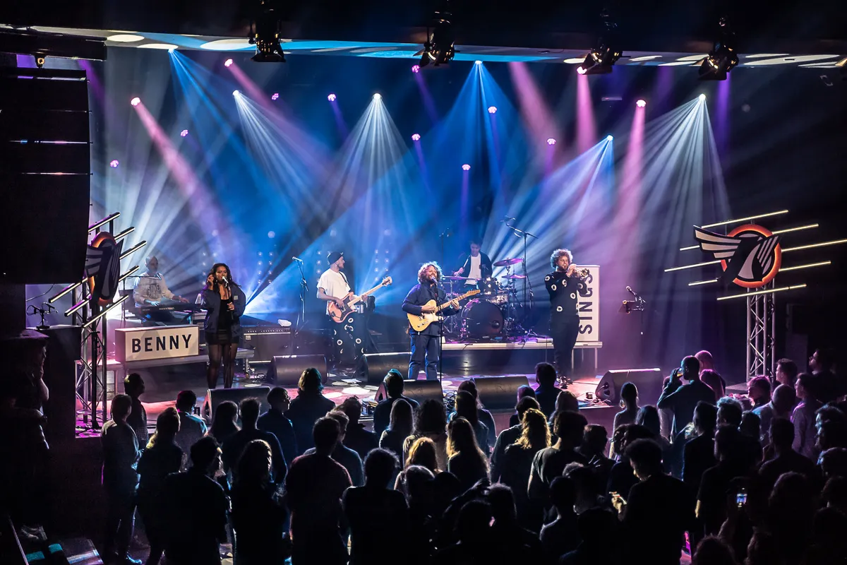 Absoluut. Benny en zijn vijfkoppige band zijn goed op elkaar ingespeeld en doen lekker hun eigen ding. Alles klinkt strak en heeft zijn eigen plek. Benny’s collega-krullenbol op de trompet zorgt bijvoorbeeld voor een hele fijne jazzy touch, terwijl de back-upzangeres een diepe harmonische laag toevoegt aan Benny’s unieke stem. Spot on.