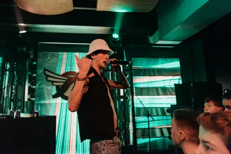 Het ruikt naar tienerjongens in de kelder van de Oosterpoort. Een penetrante mix van hormonen, iets teveel Axe-deodorant en minstens zoveel zweet. Laat dat nou precies de geur zijn die hoort bij Gotu Jim. Want puberaler krijg je ze niet dan deze rapper uit Amsterdam die werd gelanceerd door Faberyayo en Abel. De dertig kids vooraan maken de show heel erg vrolijk. Al bij ‘Chimi uit het Zuiden’ doen ze een hupsende tienerdiscomoshpit, bij ‘Matthijs de Ligt’ gaat er nog een schepje bovenop. En voor het laatste nummer willen ze zelfs een crowdsurfende Abel wel opvangen. ‘Gaat dat wel lukken? Abel, je bent dik’, giechelt Jim. Ja hoor, vele kinderhandjes maken licht werk. ‘We’re the champions of keta’, zingen ze gebroederlijk mee. Zouden ze snappen waar ze over zingen? Laten we toch maar hopen van niet.