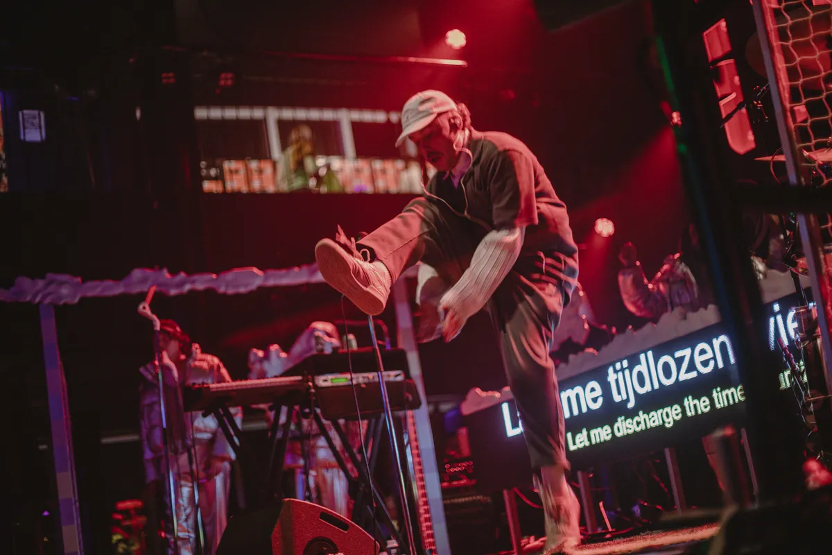 Als je dat allemaal samengooit op een podium, dan krijg je een soort kleinkunst voorstelling. En dat is me toch een potje ongemakkelijk. En leuk! Want die Maarten, dat is gewoon de personificatie van awkwardness: ‘Jongens, dit is echt niet goed genoeg hoor’ pruilt hij steeds opnieuw als het publiek zijn zelfbedachte volkslied moet zingen. Bij de mega-aanstekelijke track ‘Tijdlozen’ voert Maarten een soort hink-stap-sprong danspas uit en als hij vervolgens gaat crowdsurfen op de welgeteld vijfentwintig mensen in het publiek is het plaatje compleet. Een muzikaal intermezzo wordt vertaald naar ‘hoem pa pa pa, hoem pa pa’ wat zich dan weer leent voor de Engelse woorden ‘hoem father father father, hoem father father’. Het lijkt zo een wat bij elkaar geraapt zooitje, maar gooi het allemaal samen en het is één van de leukste shows van de avond.