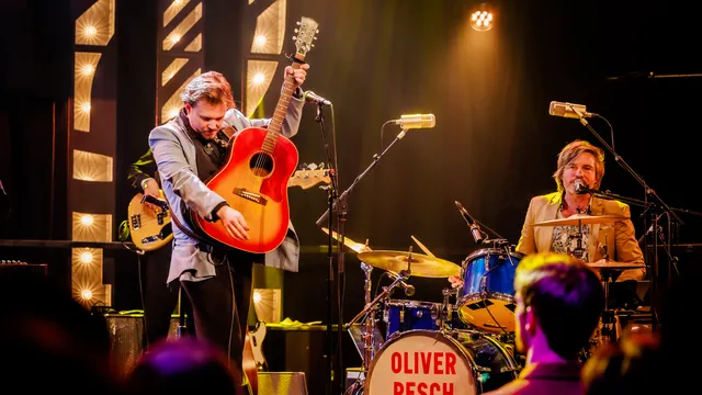 De entreehal van de Oosterpoort vult zich langzaam met een paar americanaliefhebbers, degelijke types uit groeikernen, vinexgezinnetjes en mensen die ‘m toevallig op Radio 2 gehoord hebben: het is tijd voor Oliver Pesch. En daar staat-ie dan, pakkie aan, sjaaltje om, puntschoentjes goed gestrikt. Met heel wat Popronde-ervaring op zak staat Oliver vanavond in de startblokken om zich te laten zien als echte americana-artiest. En dat begint eigenlijk wel leuk: de band speelt strak, de harmonieën zijn prachtig en de invloeden van The Eagles, John Mayer en zeker Douwe Bob (maar dan zonder kinderen en nektattoos) zijn duidelijk hoorbaar.