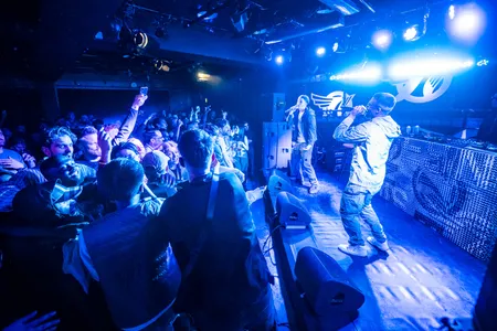 Opener is gelijk de fantastische track 'Hoe Het Was' die via 101Barz op goede releasehype kon rekenen en die nu wordt gestart vanuit de backstage. Met grote zelfverzekerdheid komen de buurjongens uit Zandvoort het podium op. De toon is gezet en de bomvolle kelderzaal hangt aan hun lippen. Geen backingtracks, alle teksten worden live gerapt en geen lijn wordt gemist. Het is duidelijk dat deze jongens elkaar door en door aanvoelen in hun muziek. Wanneer voor 'Familie' twee barkrukken tevoorschijn komen om een rustpunt in te bouwen, lukt het ze niet om hun energie in te houden en te blijven zitten.