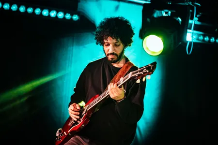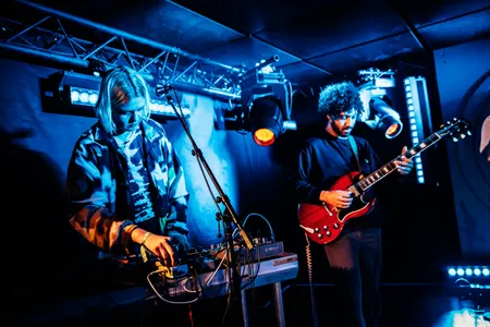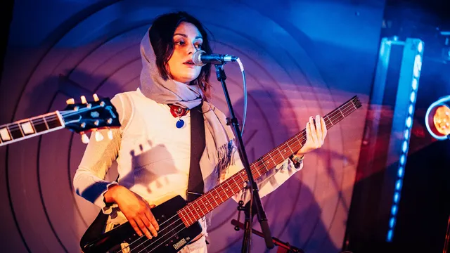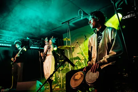Ze staan netjes in een halve cirkel opgesteld, de vijf leden van Devon Rexi, met midden achteraan zangeres/bassiste Nushin Naini. Wellicht dat het een boodschap is over gelijkwaardigheid binnen de band, maar het heeft voor het publiek ook iets afstandelijks. Dat afstandelijke past ook best bij de experimentele psychedelische dansmuziek met dubinvloeden en zang in het Farsi. Devon Rexi zegt: kijk niet naar ons, sluit je ogen en drijf weg op de bassen.