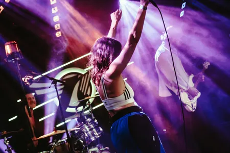Dit trio heeft precies de energie van het ontspoorde huisfeestje van die vage vriend van die vage vriend, waar je tegen beter weten in toch nog een lijntje doet op de wc, een halve fles wodka naar binnen giet en om de een of andere reden in de woonkamer besluit een crowdsurfwedstrijd te organiseren. Ergste kater OOIT, maar was het het waard? Jazeker. Tegelijkertijd wel een huisfeestje waar je op de plek wordt gezet als je een lul bent (of hebt). ‘The way you grab your dick and say you cum is boring!!’ brult Yanna al in het openingsnummer. Even later: ‘Don’t look at my boobs, they’re mine!!!!’ In Skatecafé was dit totale chaos geweest, en was Yanna vast ook echt op een plank over een kolkende massa heen gesurfd. Nu blijft het bij een vrolijk moshpitje.