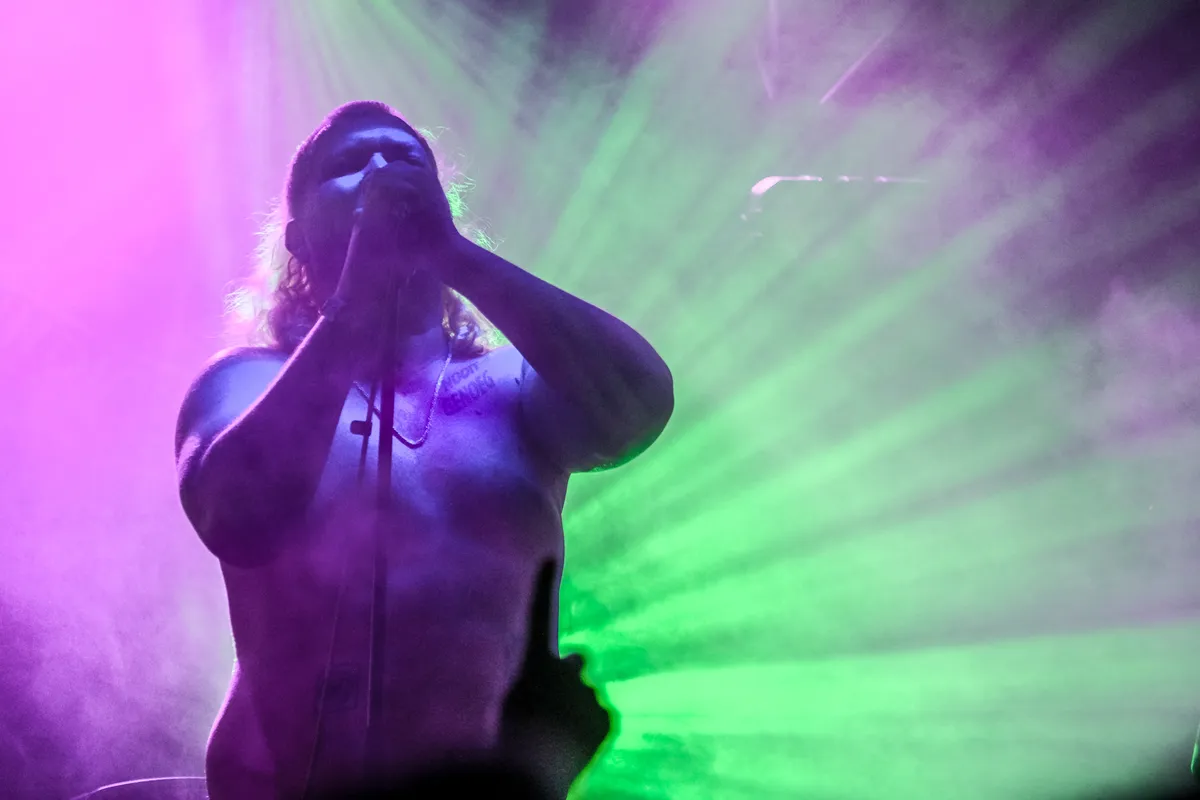 Er ontbreekt toch wel een en ander. Op zijn EP’s heeft hij samenwerkingen met onder meer Faris Badwan van The Horrors en Valentine Caulfield van Mandy, Indiana. Dat hij die niet mee kan nemen snapt iedereen, maar van tape had best gemogen. Het pleit voor hem dat alles live is, maar toch. En bij deze intense vervormde elektronica hoort net dat beetje extra in de vorm van visuals of stroboscopen. Dat beetje extra komt er als Duggan-Borges uiteindelijk toch zijn gitaar omdraait en het geluid van zijn snaren door dat hele circuit heen jaagt. Dan is de Maloucore een feit. Wow.