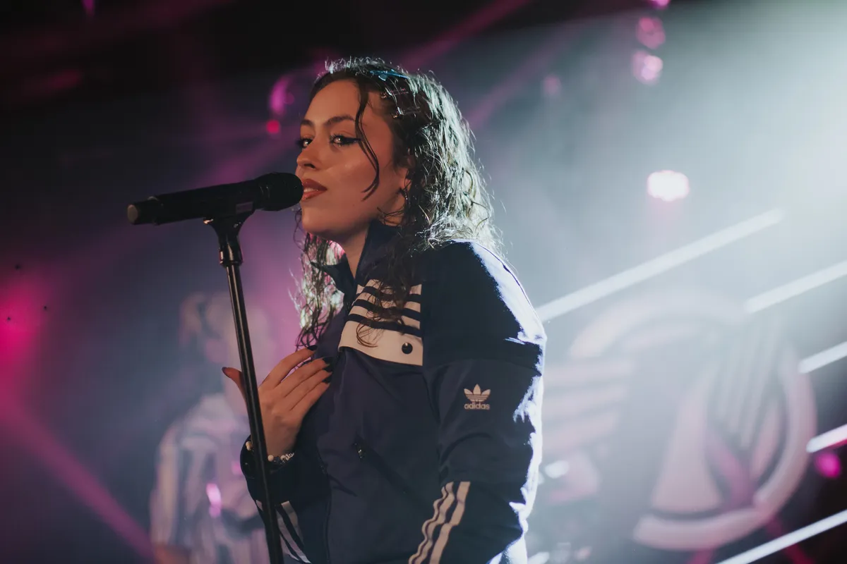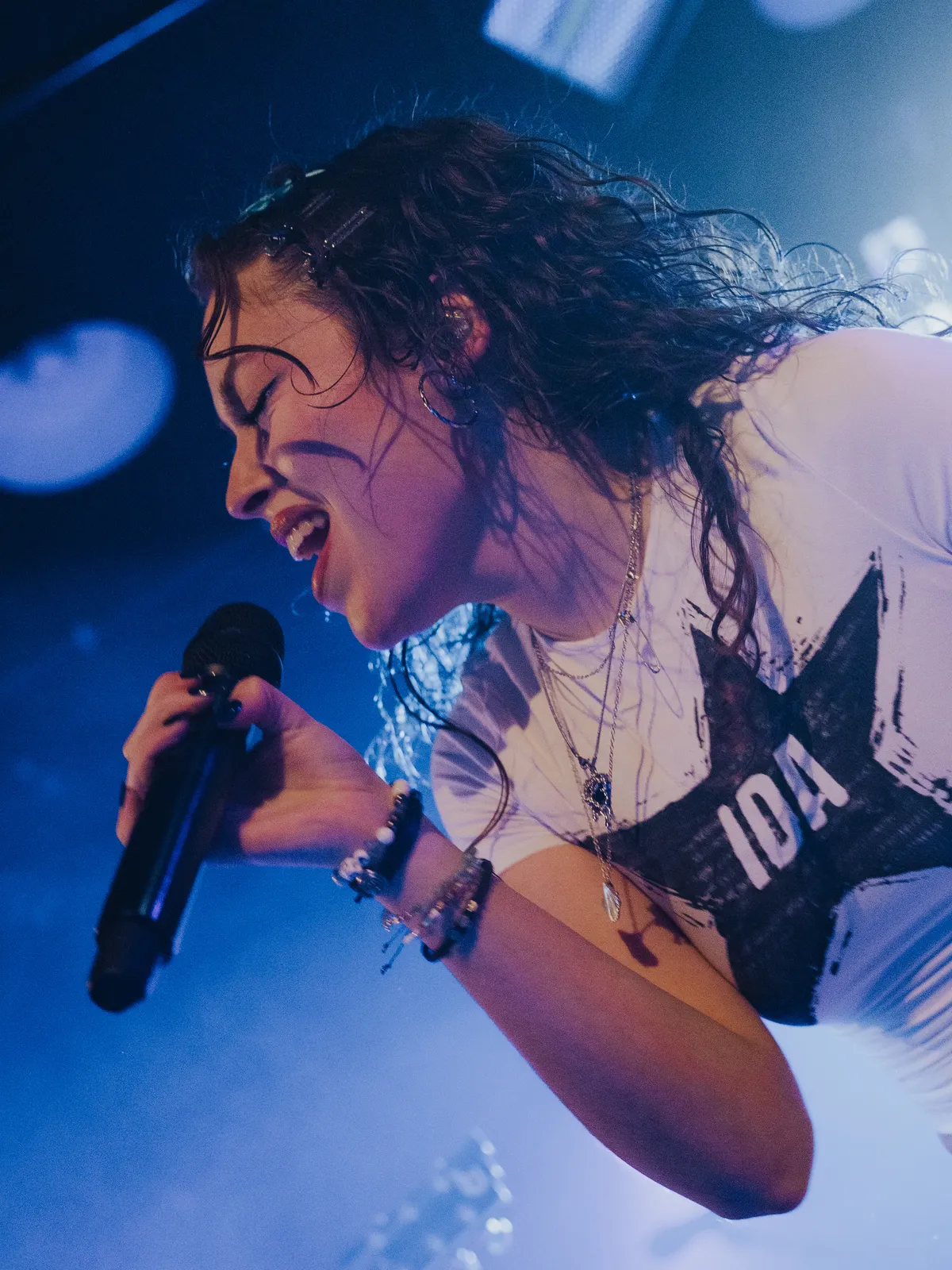 IDA zegt over zichzelf dat ze niet zo goed kan kiezen. Niet zo verrassend als je haar muziek hoort, een hele eigen mengelmoes van poppunk, clubbeats, poppy melodieën en lekkere crunchy geproduceerde vocals. Op de Rockacademie in Tilburg ontdekte ze dat je als songwriter veel meer te kiezen hebt dan alleen liedjes schrijven met gitaar en zang, en toen was het hek van de dam. De genre-bending IDA-sound creëert ze samen met producer en muzikale sparringpartner MAZOO. Vandaag staat ze met twee bandleden op het podium, maar IDA is de ster, getuige ook haar shirt, met daarop een grote ster met ‘IDA’ in het midden. Duidelijk!