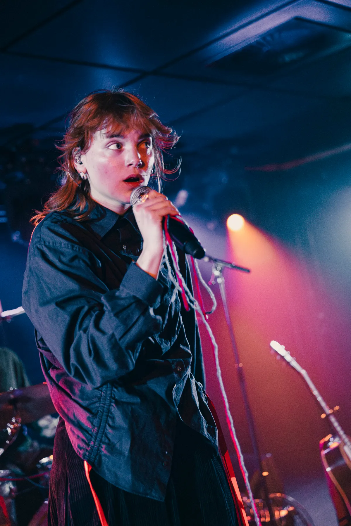 We kenden tjels al van haar prachtige, ingetogen folkliedjes waarmee ze tijdens de Popronde elke groep luidruchtige boomers muisstil kreeg. Daarvoor was ze nog CHELS, die met The Puppet, geproduceerd door Matthijs van Duijvenbode (Tim Knol, Douwe Bob) en Ilse DeLange, een bescheiden hitje scoorde. Bij dit soort intieme, akoestische muziek is het altijd maar de vraag of iedereen een halfuurtje z’n muil kan houden in de bovenzaal. Het antwoord? Had tjels hier alleen gestaan, waarschijnlijk ‘ja’. Maar nu hoeven we ons daar sowieso geen zorgen over te maken: de folkzangeres staat met een vierkoppige band.