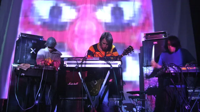 De drie heren van Black Dice staan vol in hun eigen vuurlinie, met zijn drieën compact voor die stapel versterkers. Terwijl op het scherm boven het podium clowns met sardonische glimlachen opduiken realiseer je je al: een band die zichzelf niet spaart voor sonisch geweld, zal zijn publiek zeker niet sparen.
