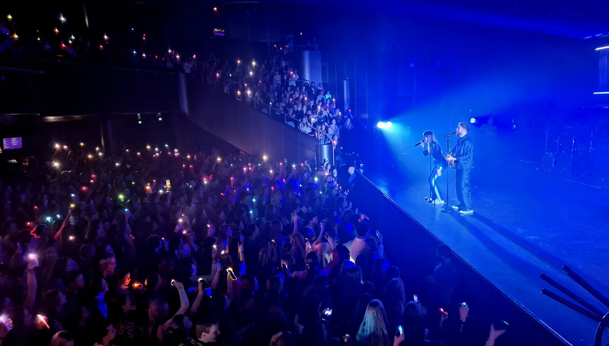 Bij het binnen gaan krijgen we allemaal een gekleurd papiertje, dat we straks voor de flitser van onze telefoon moeten houden bij het nummer ‘Dromen In Kleur’. We positioneren ons op de trap van de Ronda zaal, met perfect uitzicht op het podium. ‘Dit is de plek voor oude mensen, beneden is voor de jeugd’, zegt Marijn, terwijl recht onder ons een meisje flauwvalt en van alle kanten flesjes water aangereikt worden. Bier drinken de fans van Suzan & Freek toch nauwelijks, dus dat komt mooi uit. Naast me staat een meisje van tien met haar vader. Het is haar allereerste concert ooit. Dat zijn altijd shows met een bonus, van die avonden dat iemand voor het eerst de magie van het licht, geluid, de publieksinteractie, de toegift ervaart. Haar favoriete liedje is ‘Nooit Meer Regen’, van de nieuwe plaat. Ze gaat zeker aan haar trekken komen.