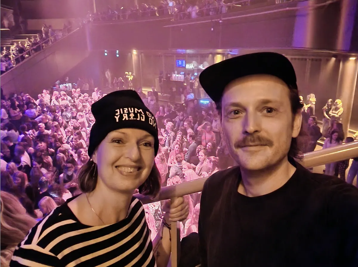 ‘Weet jij iets goeds om aan ze te vragen?’, vraagt Marijn als het duo vertrokken is en de overgebleven fans nog de longen uit hun lijf zingen op ‘Unwritten’. Oh, verdomd, die meet & greet. Ik ben vandaag zoals dat hoort als een blok gevallen voor de stem van Suzan en de charmes van Freek, maar er komt nog altijd geen zinnige vraag in me op. ‘Ach, het hoeft ook niet, ik word gewoon gelukkig van hun liedjes’, zegt Marijn. Nog geen drie minuten later krijgen we een rood bandje in onze handen gedrukt van een super strak schakelende tourmanager. ‘Hé, jij bent wel de laatste persoon die ik hier verwacht’, zegt de perspromotor van Sony Music die ik backstage tegen het lijf loop.