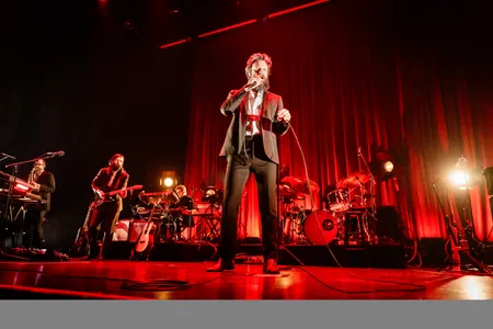 Hij brengt z’n cinematografische, beschouwende teksten in Utrecht als een soort steracteur tot leven. Hij komt immers uit Hollywood. Bij tracks als ‘Being You’ beeldt hij elke zin met handgebaren uit. Tussendoor zwaait-ie dramatisch met z’n microfoonstandaard en haalt hij gladjes zijn handen door z’n Elvis-achtige haar. Met studiolampen op hem gericht en een steengoede, koelbloedige band achter zich, heeft de show wat weg van een toneelstuk. Het houdt je vermaakt bij de les – dat is ook wel nodig bij nummers die soms negen minuten duren.