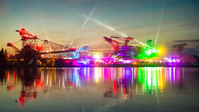 Geloof het of niet, maar dit is het meest bizarre festivalterrein dat je je maar kunt voorstellen. Ferropolis heet 't, een kunstmatig gecreëerd schiereiland temidden van een prachtig meer in een oude kolenmijn, dat vroeger behoorde tot het meest vervuilde gebied van Duitsland, zo vertelde artistiek leider Stefan Lehmkuhl vanavond in 3voor12 Radio. Alle oude machinerie, en dat zijn veelal kolossale bouwwerken en monsterlijke hijskranen van dik dertig meter hoog, staat er nog en daartussen zijn de vijf stages opgesteld. Industrieel voor gevorderden, dus, en zo'n zes uur rijden vanaf Utrecht, in Oost-Duitsland circa 140 kilometer onder Berlijn. De rest van het jaar is Ferropolis een museum, maar een paar keer per jaar verandert het in een monsterlijk bewegend muziekfestijn. Het begon tien jaar geleden als een eendagsrave, en groeide over tien jaar tijd uit tot vier dagen gekkenhuis. En dat brengt ons op het volgende punt: de programmering.