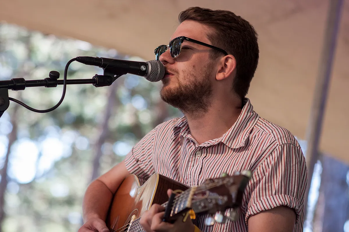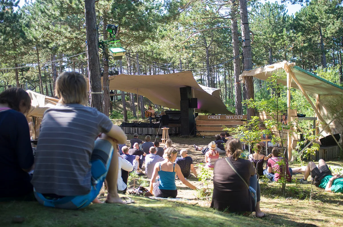 Beter wakker worden dan met Onder Invloed op het Naar Buiten podium, midden in de bossen van Vlieland, lijkt niet te kunnen. Het is er stil, er is schaduw en het ruikt er lekker naar dennen. Een prima omgeving voor singer-songwriters en een ingetogen interview.