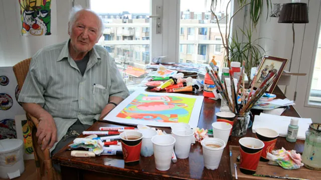 Tegenwoordig slijt Simek een groot deel van zijn tijd in een fraai atelier met een lichtkoepel op de vierde etage. Daar schildert hij met fluorescerende verf, voornamelijk rondborstige Picasso-vrouwen. 'Hier op de deur hangt een naakte man', zegt hij. 'Mensen beklaagden zich dat ik alleen maar vrouwen schilder, dus ik ontkwam er niet aan. Ik heb zijn edele delen netjes afgedekt, maar als je aan het touwtje trekt zie je wat er onder zit.'