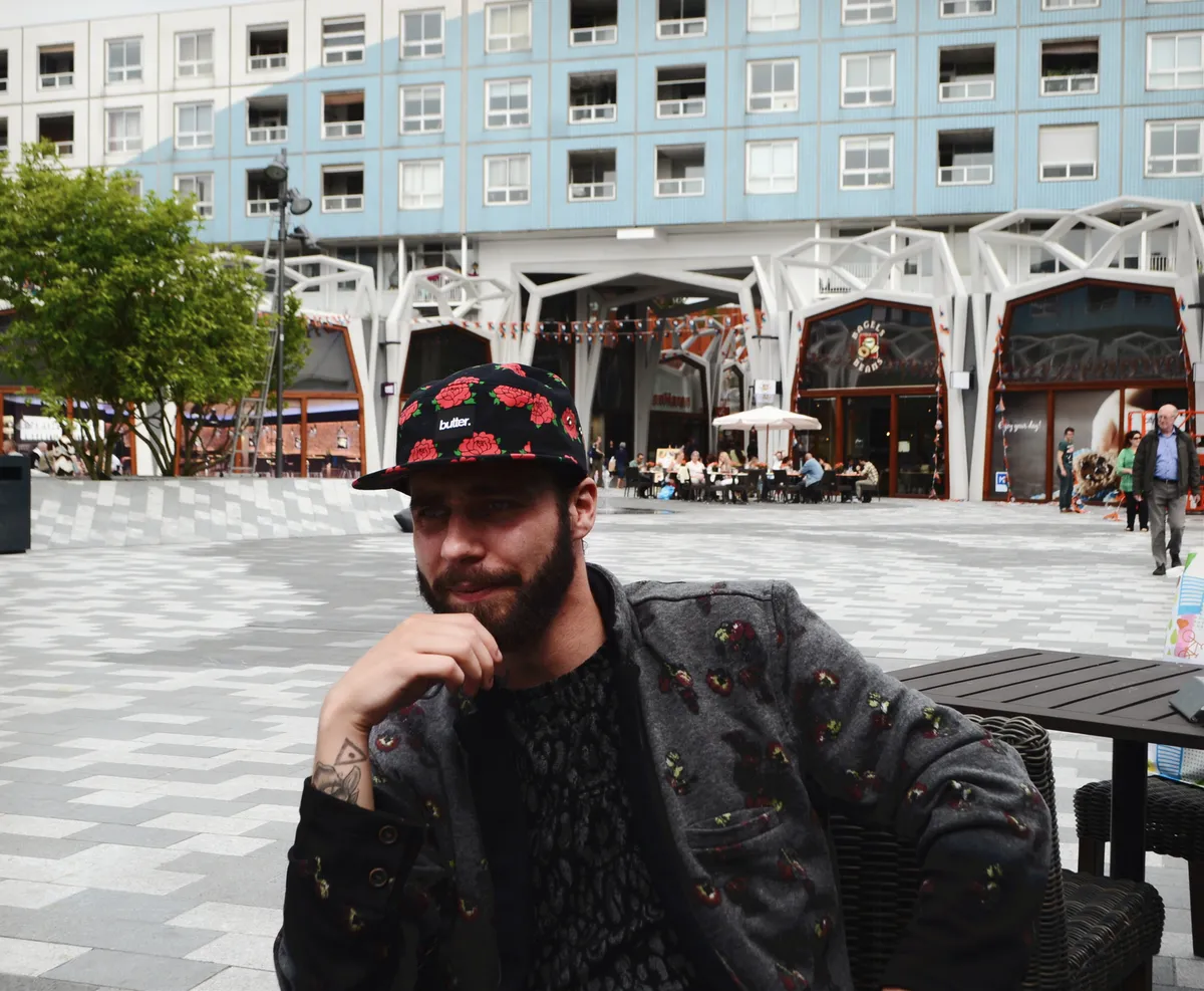 "Ik ken inmiddels ook meer mensen in Zwolle, mijn meeste vrienden wonen daar, dus wat me hier houdt... Het is een hele treurige stad eigenlijk, maar ik vind dit soort dingen heel mooi; die hele jaren '70 bouw. En de nieuwe parkeergarage is te gek, daarin is elke verdieping als nieuw Nieuwegeins tijdperk ingericht. Mijn ouders kwamen, net als de meeste mensen hier, uit een Utrechtse volkswijk. Ze zijn hier begin jaren '80 komen wonen en ik ben daar een product van. Ik ben geboren in het ziekenhuis hier achter en dan blijf je er ook."