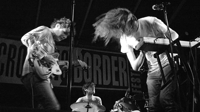 Spectoriaanse surfrock in een koek en zopie tent. Ook dat is Crossing Border. Het zou niet mogen werken, maar de vage, zonnige warmte Ganglians spelen het klaar. Ze staan volgende week ook op het winterse Le Guess Who? Ga ze zien!