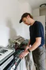 Het idee is dat ik zelf aan de slag ga, maar het is natuurlijk een illusie dat ik al die apparaten direct doorgrond. Daarom beschouw ik Max als een levende YouTube tutorial. En de apparatuur die hier staat vormt het uitgangspunt. In eerste instantie voelt het misschien logisch om een lijstje te maken van dingen die ik mooi vind, en die als uitgangspunt te nemen. Schaamteloze rip-offs maken, prima startpunt van een creatieve carrière. The Stones zijn er ook groot mee geworden. Maar we draaien het om: ik ga kijken waar deze apparaten mij heen leiden. We gaan de klassieke basis van de house gebruiken: een Duitse kopie van de Roland 808 drumcomputer, de echte Roland 303 en 101, en de Roland Juno 106 voor de melodie. Of melodie: dat kaderen we meteen flink af: ik kan geen pianomelodietje spelen, dus we gaan werken met loopjes van een paar noten.
