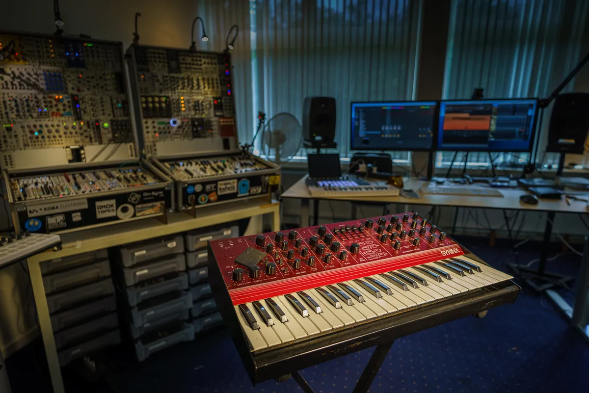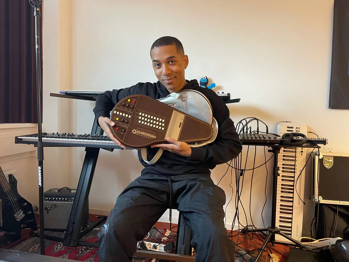 ‘Veel hiphopproducers werken voornamelijk op hun computer. Ik was er ziek van dat iedereen dezelfde geluiden had, hetzelfde deed. Als ik iets anders wilde? Dan had ik hardware nodig. Dus ben ik synthesizers gaan kopen. Mijn kindjes, hè? Ik heb ze allemaal namen gegeven. De eerste was Synthia, een Yamaha Reface DX. Daarmee heb ik heel Phonak gemaakt en de helft van Professor. Daarna volgden Provensio – een Prophet REV2-8 die ik heb gehaald toen ik bij Ark heb getekend, echt een beast –, Nova, Polly en Djoen-o.