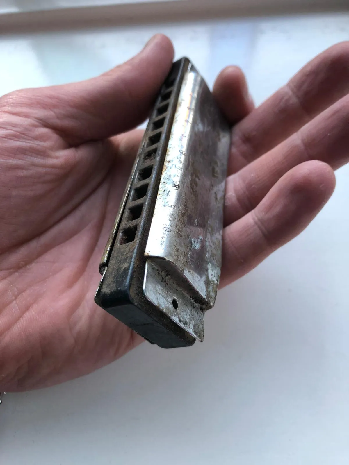 ‘In 2002 studeerde ik aan de universiteit van Edinburgh in Schotland. Dat was voor mij een vormend jaar: de drie jaar daarvoor had ik eigenlijk helemaal niks gedaan, ik zat alleen maar op mijn kamer Woody Guthrie en Bob Dylan te luisteren. Ik was een heel lethargische, licht depressieve student. In Schotland veranderde ik van de een op de andere dag: ik werd in het diepe gegooid qua literatuur – dat wakkerde een passie aan qua tekst – en werd lid van de folk song society, een studievereniging rondom folkmuziek. Ik ontplofte van inspiratie en verlangen, viel in de wereld van folk en kocht voor het eerst een gitaar én deze mondharmonica. Ik ben lang onzeker geweest over mijn gitaarspel, ik kan mezelf nog altijd niet als gitarist beschouwen, maar die mondharmonica? Dat klinkt misschien arrogant, maar ik kon ‘m meteen bespelen. Ik dacht: het zijn tien gaatjes, je kan blazen en zuigen, dus met twintig opties moet je het doen. En het scheelt dat een mondharmonica altijd in een toonsoort zit, dus in principe zitten er geen valse noten op. ’s Middags kocht ik hem, ’s avonds stond ik al in een folkkroeg mee te spelen. Het is zo’n expressief instrument, zo dicht verbonden aan je adem. Het voelde voor mij als een ingang in die folkwereld, een manier om samen te spelen, en je kunt hem altijd meenemen.