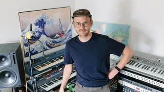 ‘Maar mijn mooiste synth? Dat is deze Syrinx, van de Utrechtse bouwer Synton. Ze hadden een winkel bij de Dom waar ik als jonge jongen regelmatig met mijn neus tegen het raam stond geplakt. Het is een monofone synthesizer uit de vroege jaren tachtig zoals bijvoorbeeld de Korg MS-20, maar bij de filter gebeurt iets raars: als je er een beetje mee gaat bewegen levert dat een soort keelklanken op, een heel karakteristiek geluid.