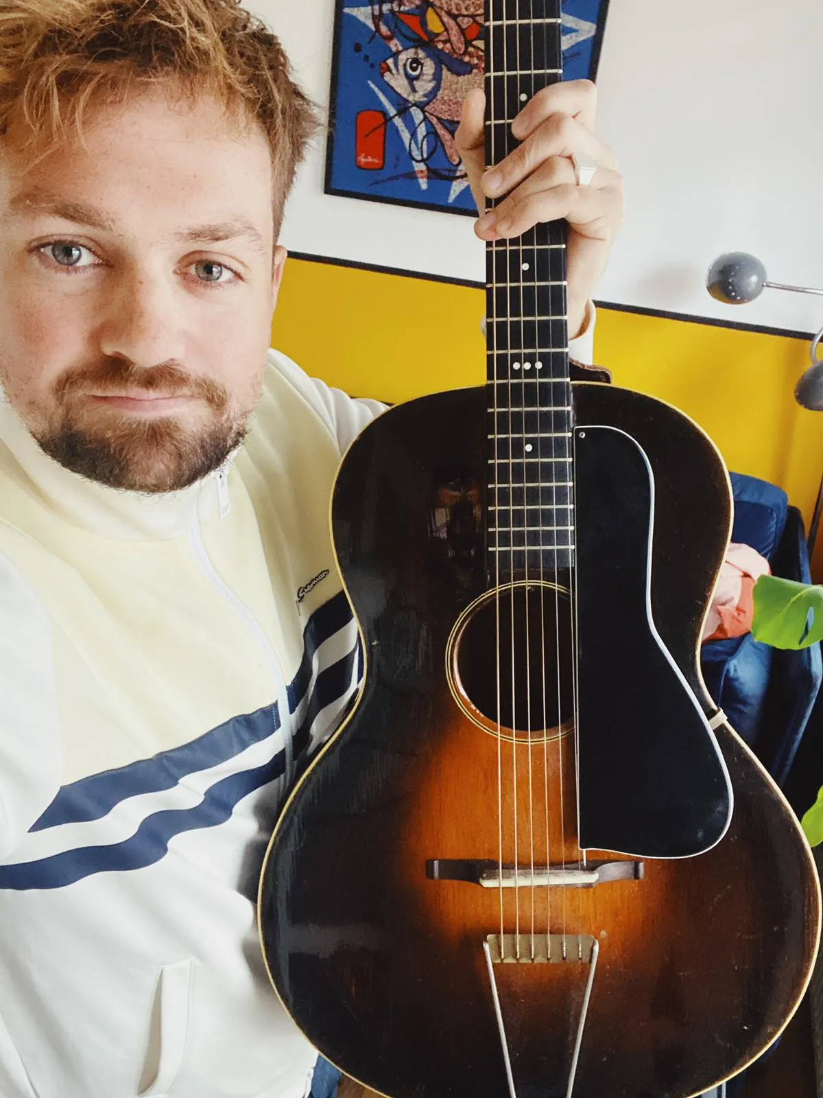 Hoe dan ook: eigenlijk vind je nooit ouwe Gibsons op Marktplaats, vaak moet je naar gespecialiseerde winkels en handelaren. En dan betaal je de hoofdprijs. Vintage gitaren zijn kneiterduur geworden, het slaat nergens meer op, ik kan ze niet eens meer betalen. De sport is dus: bijzondere dingen vinden met een leuke prijs. Drie jaar geleden had ik weer eens “gibson vintage akoestisch” ingetikt en daar kwam een gitaar naar boven die eruit zag als een Gibson uit de jaren dertig. Maar de prijs, dat kon eigenlijk niet. Zulke Gibsons beginnen normaal bij 2000 euro, en gaan al gauw naar de tienduizenden euro’s. Deze stond erop voor 1400 euro, dus ik mailde meteen: “Ik kom kijken.” Het was een vaag verhaal: ik kwam in een appartementje op de eerste verdieping van Amsterdam-West bij een man die meditatiemuziek maakte, en hij had een vaag verhaal dat hij de gitaar voor een Engelse vriend verkocht.