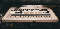 ‘Van dit ding zijn er maar 300 gebouwd, daarvan waren de meesten zwart, een aantal blauw en dan nog 20 rooien. Ebay wordt gek als er eentje wordt aangeboden, en ongeveer eens per jaar krijg ik een mailtje: wil je die niet verkopen? Nee, dit is een erfstuk. Ik maakte in de jaren negentig als The Human Beings techno met Bert van der Grift, hij was mijn maatje en beste vriend en is in 2005 plots overleden aan een hersenbloeding. Dit is voor mij veel meer dan een apparaat waar interessante geluiden uit komen. Als ik dit ding tevoorschijn pak denk ik aan Bert, en dat is voor mij een gateway naar allerlei andere herinneringen.’