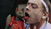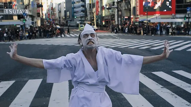 Inderdaad ontstaat er chaos wanneer hij wordt gefilmd op Shibuya Crossing. ‘Ik werd na twee takes opeens van achteren beetgegrepen. Dat bleek een politieagent te zijn, die me zonder iets te zeggen heeft meegesleurd naar een klein politiehokje midden op de oversteek. Hij werd helemaal gek, begon schuimbekkend in het Japans tegen me te schelden, gooide de tafel tegen de muur. Ik zat weggedoken in een hoekje: “Sorry, sorry, I don’t understand!” Hij pakte daarop zijn wapenstok, sloeg op de tafel en dreigde me in elkaar te aan timmeren.’ Wat Meit toen dacht? ‘Ja, dat mijn betere dagen waren geteld, natuurlijk. Het was echt een Jappenkamp-ervaring. Die situatie duurde een minuut of tien, er kwam ook nog een collega bij, ze gingen allebei weer weg. Toen ze terugkwamen, waren ze opeens kalm en vriendelijk, en begonnen ze in het Engels tegen me te praten.’ Wat bleek: de politie in Japan mag niet zomaar geweld toepassen, maar wel degelijk zoveel mogelijk intimideren. ‘Ze waren kennelijk zelfs ontzettend bang voor me, omdat ik zo’n provocerend kostuum aan had en me had ingesmeerd met bakmeel. Dat stoof en dwarrelde op de mensen die voorbij kwamen. Maar… als wit poeder op de verkeerde persoon komt, schieten de Yakuza gangsters je direct dood, omdat ze ontzettend bijgelovig zijn en jij eruit ziet als hun grootste nachtmerrie.’ Uiteindelijk werd het toch nog een prettig gesprek met de agenten, vertelt Meit, waarin ze vroegen wat voor eten hij lekker vond, enzo.