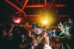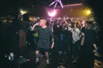 Dat gebeurt ook bij De Likt, de Rotterdamse rap-electro-act die vrijdagnacht rond 2 uur een show geeft in het bungalowpark en daar voor het eerst nieuwe muziek presenteert. Het is geen muziek om sensueel op te dansen, niet om op te schuren, maar om lomp op te beuken met een ‘alles-mag-kapot’-mentaliteit. De ruimte – met uitzicht op het tropisch zwemparadijs – is ramvol. Rapper/dichter Jordy springt driemaal over de hoofden van het publiek, het publiek belandt juist weer op het podium en een jonge gast met pluizig lang haar klautert op een plantpot om onstuimig heen en weer te zwieren. Een beetje rommelig is het allemaal wel, en uiteindelijk wordt het laatste nummer voortijdig stilgezet omdat mensen op de kabeltjes gaan staan en de muziek telkens uitvalt. Ach ja.